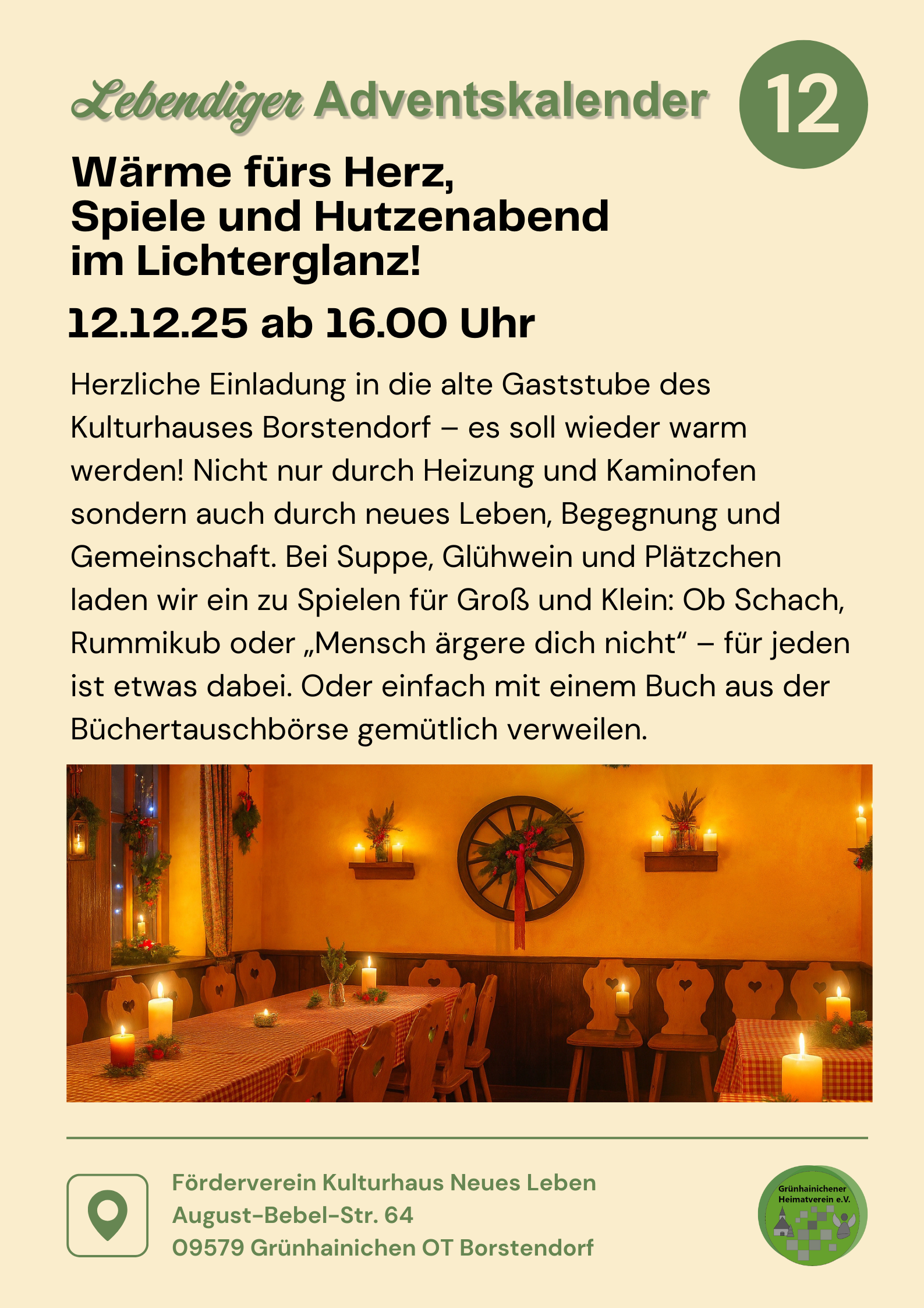 Lebendiger Adventskalender-Wärme fürs Herz, Spiele und Hutzenabend im Licherglanz